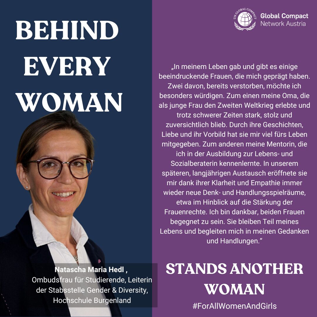 Im Zuge des International Women´s Day gestalten wir bereits zum zweiten Mal eine Social Media Kampagne auf LinkedIn und geben Frauen* aus unserem Netzwerk eine Bühne. Unter dem Titel “Behind every woman stands another woman” bringen wir Sie vor den Vorhang und fördern weibliches Empowerment. Unser Leben wird täglich von Begegnungen geprägt und wir sind gespannt, welche Frau(en) Sie in Ihrem Leben inspirieren/inspiriert haben.